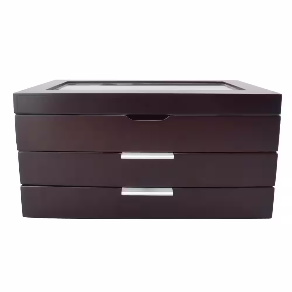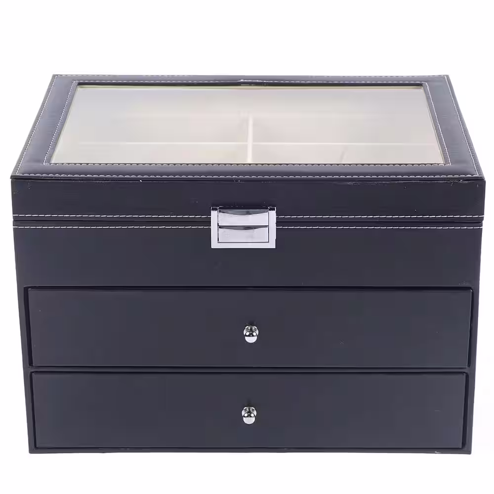 YIYIBYUS 24-Piece Black High PU Leather and Medium Density Fiberboard Large Eyeglass Sunglasses Glasses Display Case