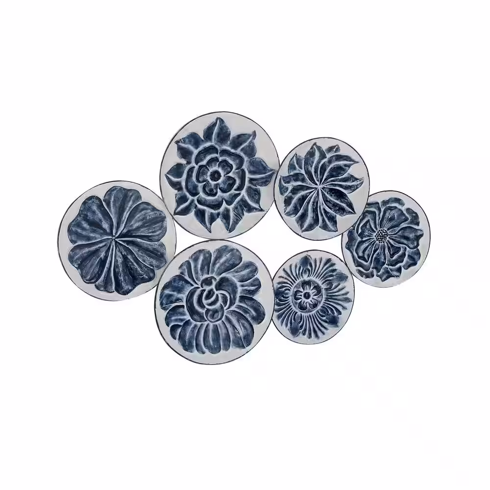 Litton Lane Metal Blue Plate Wall Decor with Embossed Details