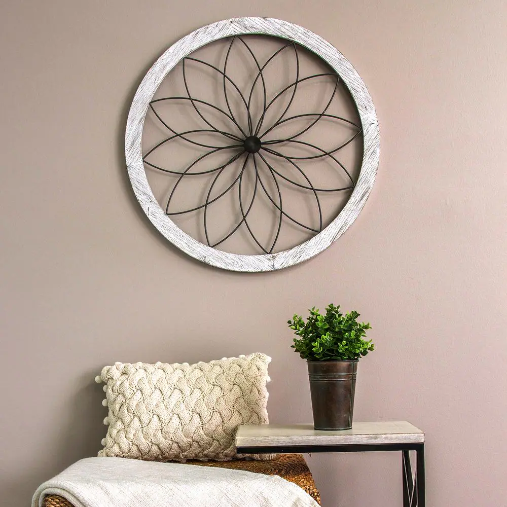 Stratton Home Decor Flower Metal and Wood Art Deco Wall Decor