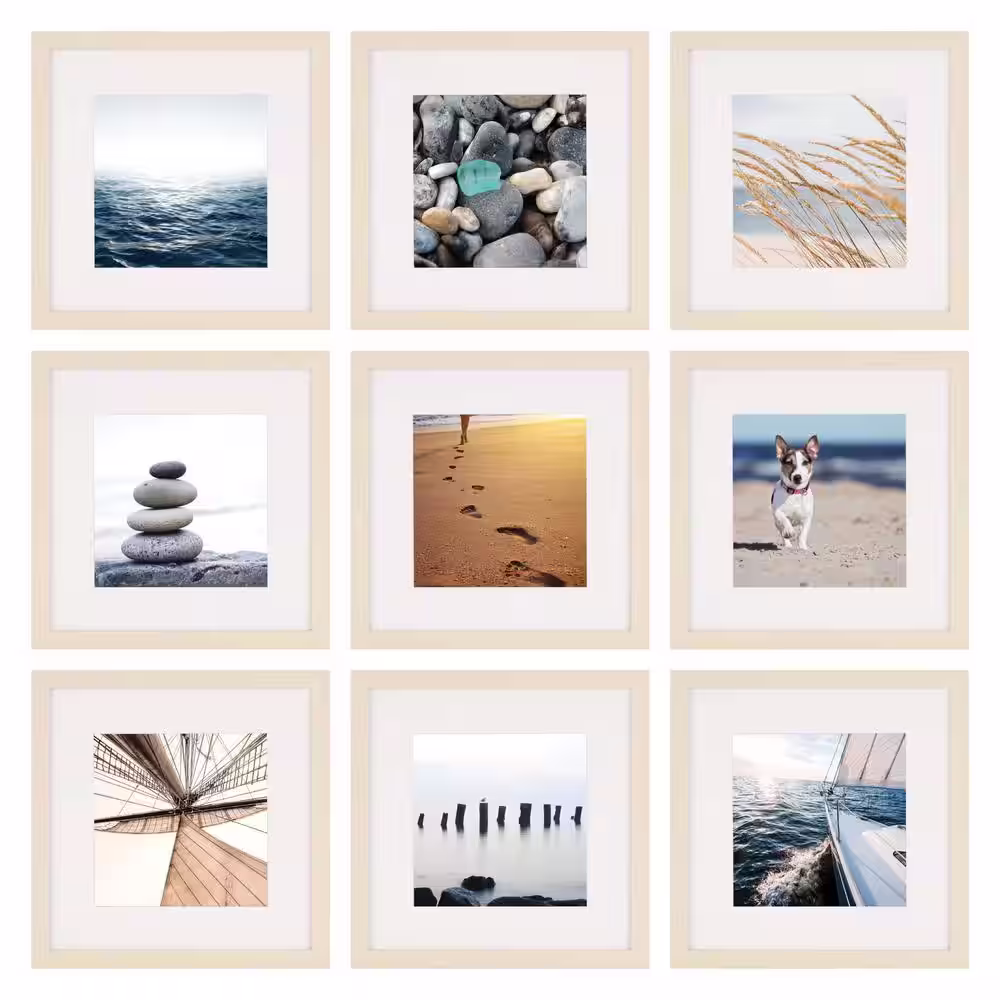 None 8 in. x 8 in. Beige Picture Frame (Set of 9)