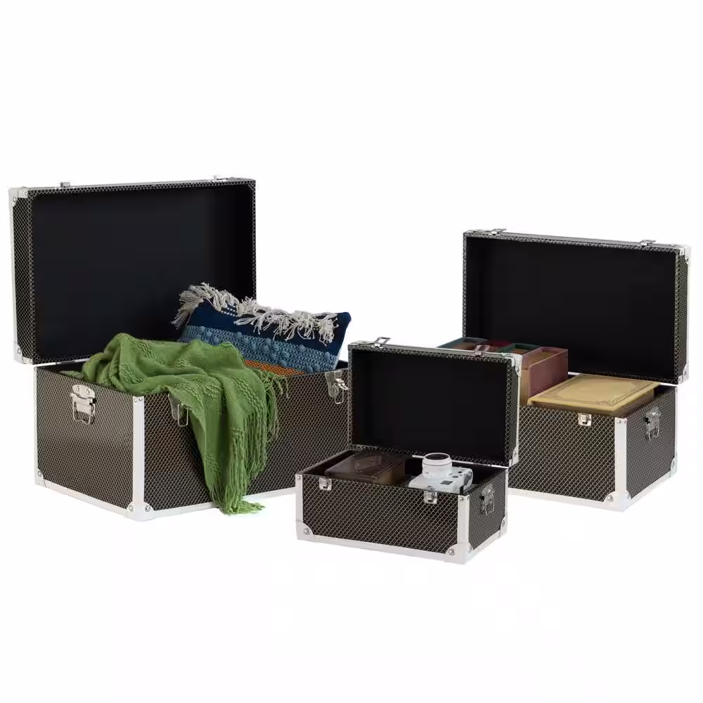 Vintiquewise Faux Leather Storage Trunk (Set of 3)