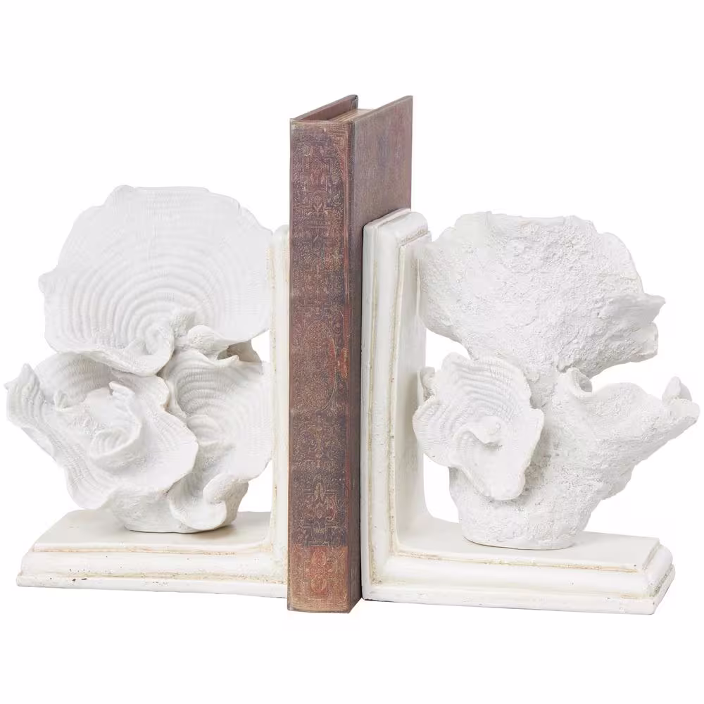 Litton Lane Cream Polystone Textured Coral Bookends (Set of 2)