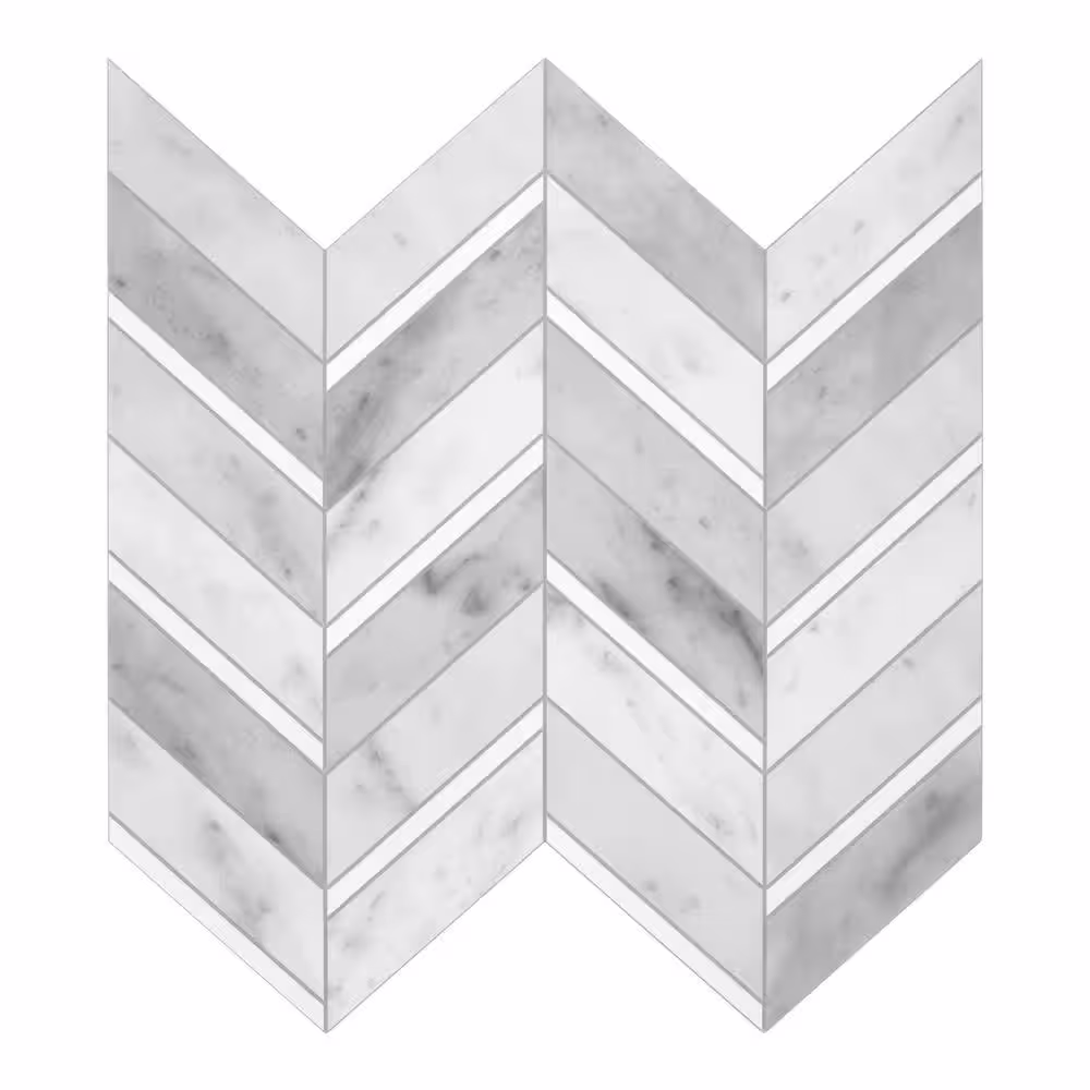 None White Chevron Stone Composite 11.3x11.6in. Peel and Stick Backsplash Herringbone Wall Tile (10 Tiles, 9.1 Sq. Ft.)