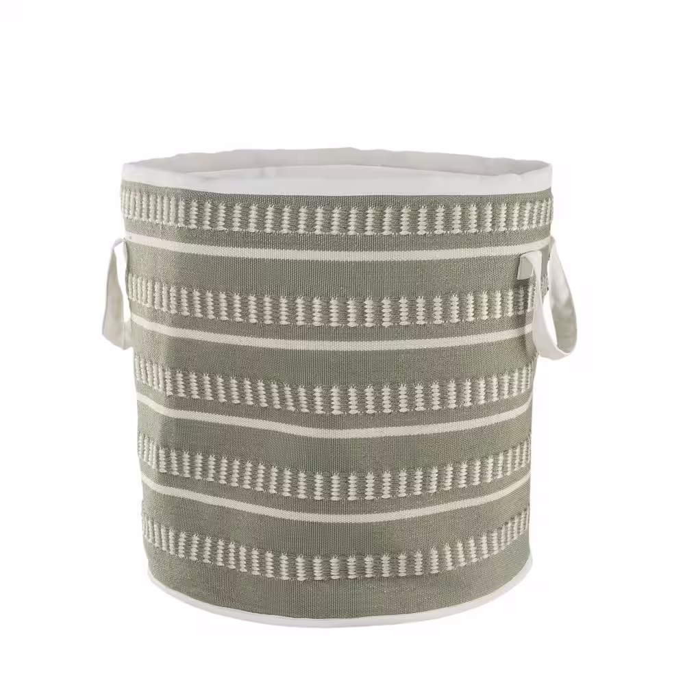 LR Home Valerie Dash Stripe Green / White Geometric Polyester Indoor/Outdoor Storage Basket