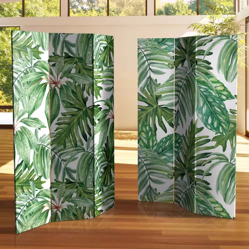 Oriental Furniture 6 ft. Palm Leaves Printed 3-Panel Room Divider