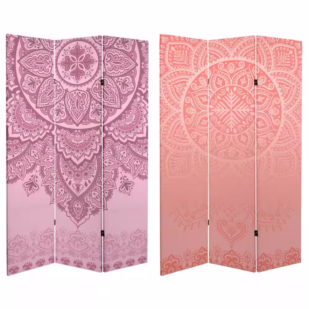 None Pink Mandalas 6 ft. Printed 3-Panel Room Divider