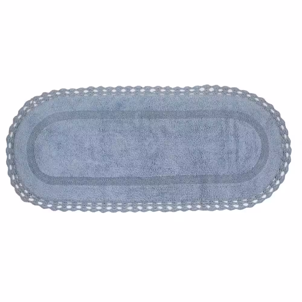 None Hampton Crochet Bathmat 21 in. x 54 in. Blue Cotton Bath Rug