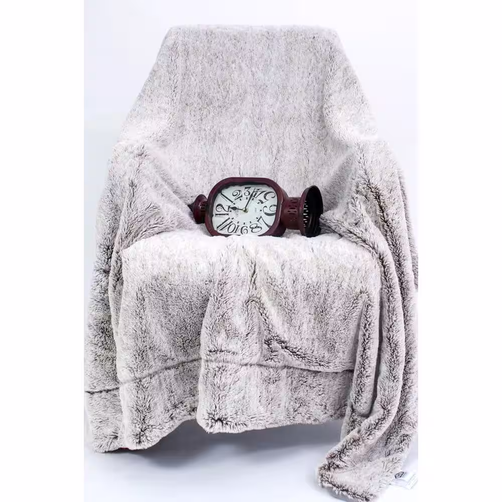 AC Pacific Luxury Grey Faux Fur Throw Blanket and Back Fleece