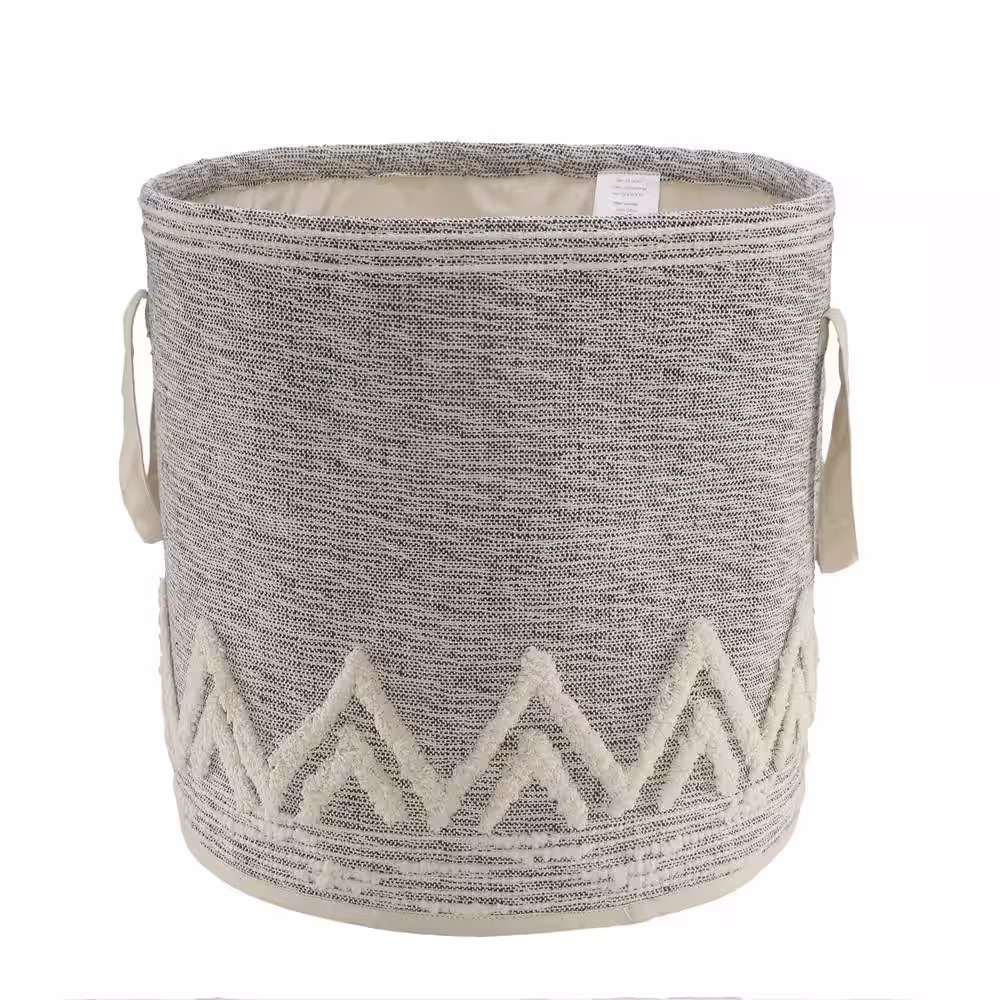 LR Home Amara Modern Gray / White Cotton Tufted Peaks Decorative Storage Basket
