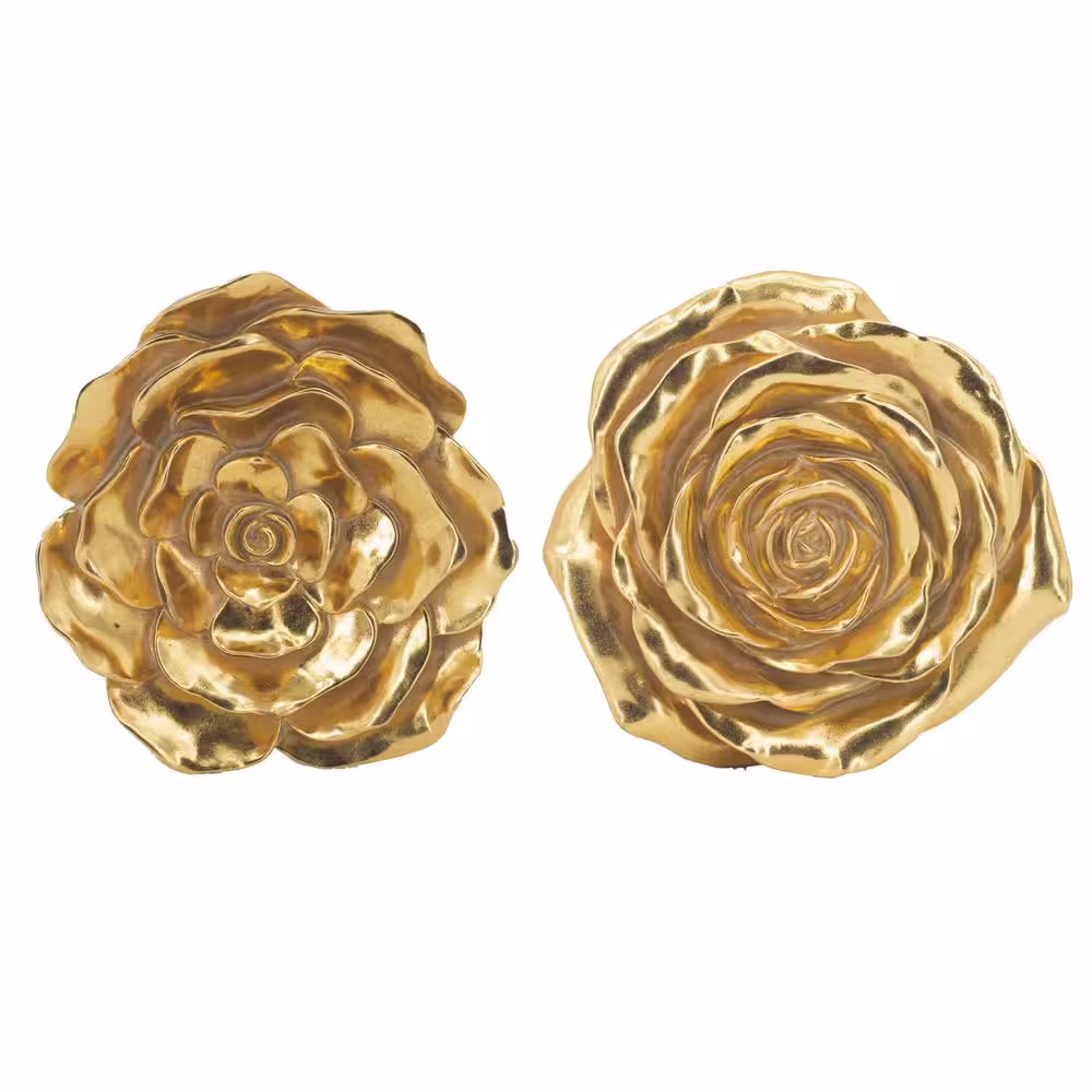 A&B Home Set of 2 Gold Floral Rose Wall Accent - Decorative Sign