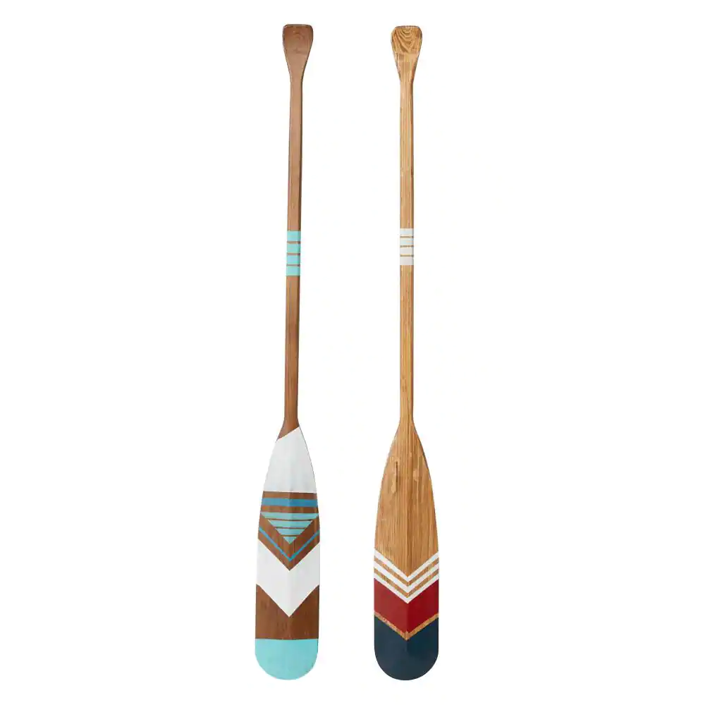 Litton Lane Wood Multi Colored Novelty Canoe Oar Paddle Wall Decor with Arrow and Stripe Patterns (Set of 2)