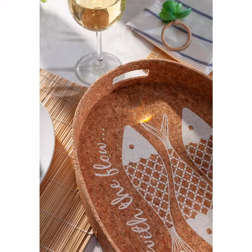 Lone Elm Studios Decorative Tan Printed Oval Cork Tray