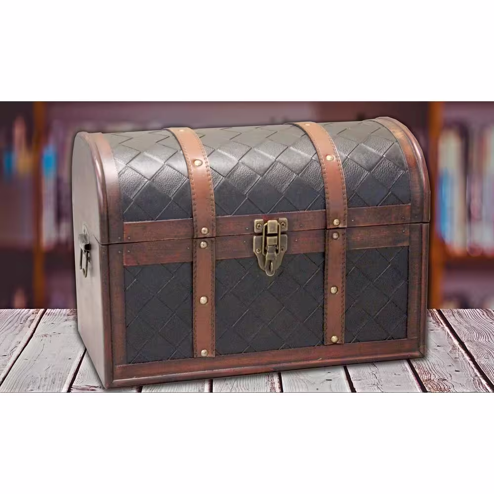 Vintiquewise 11.5 in. x 6.5 in. x 5 in. Wooden Faux Leather Treasure Chest