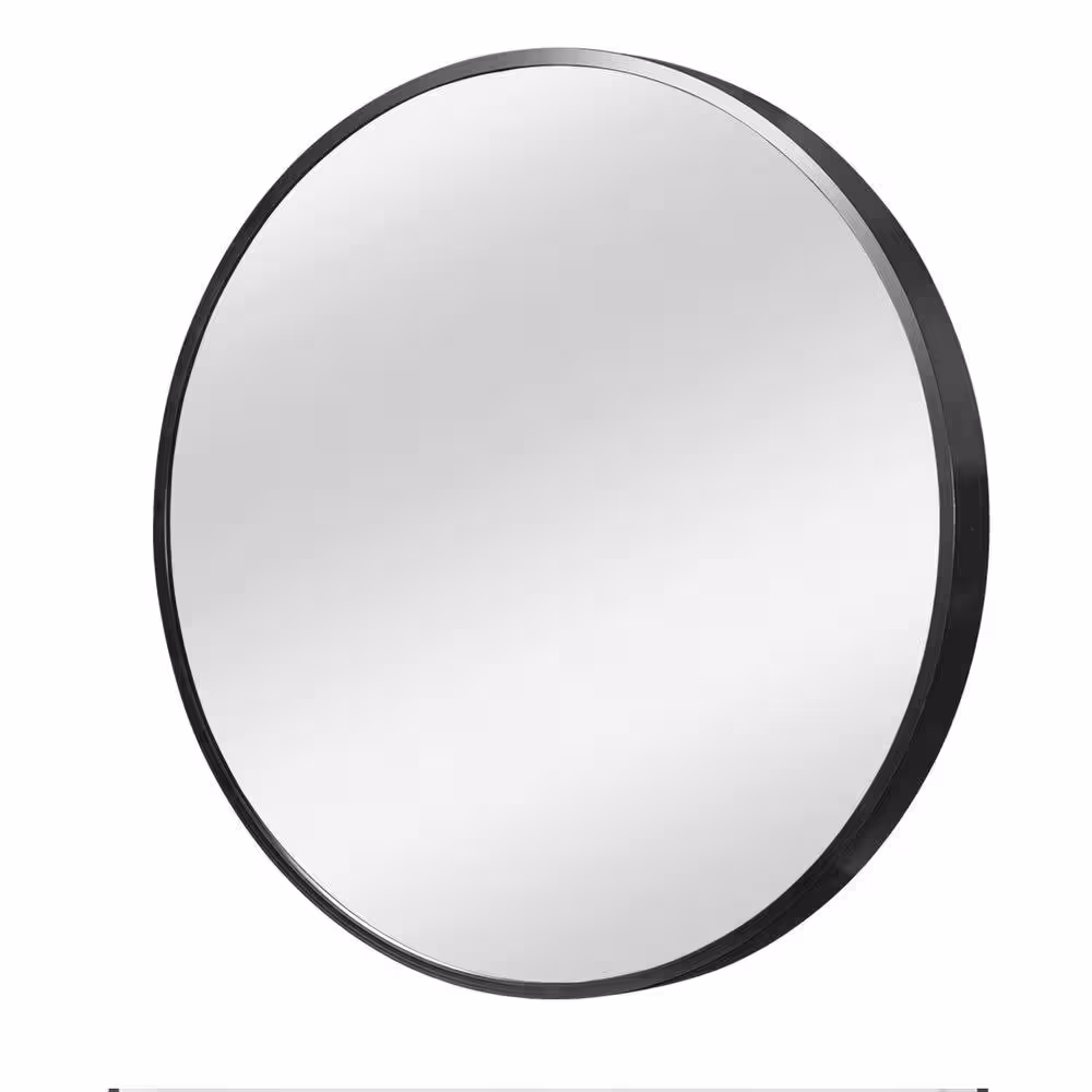 Miscool July 24 in. x 24 in. Black Modern Round Aluminum Alloy Framed Decorative Mirror