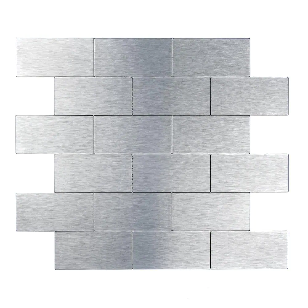Art3dwallpanels Subway Metal Brushed Silver Peel and Stick Backsplash Tile 11.3 in. x 11.1 in. ( 8.7 sq. ft./Pack)