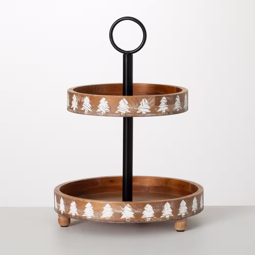 SULLIVANS 16.25 in. Pine Tree Wood Tiered Tray Multicolored