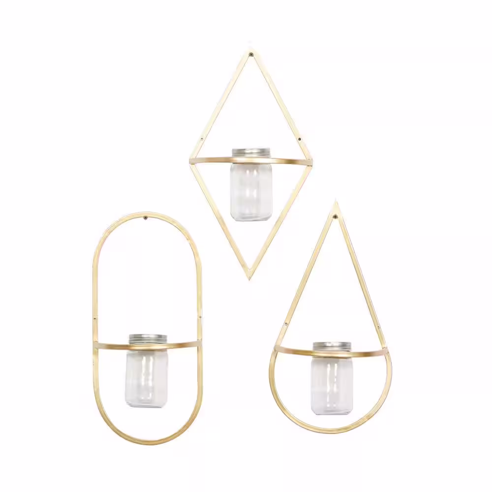 CosmoLiving by Cosmopolitan Metal Gold Geometric Wall Decor with Glass Holder (Set of 3)