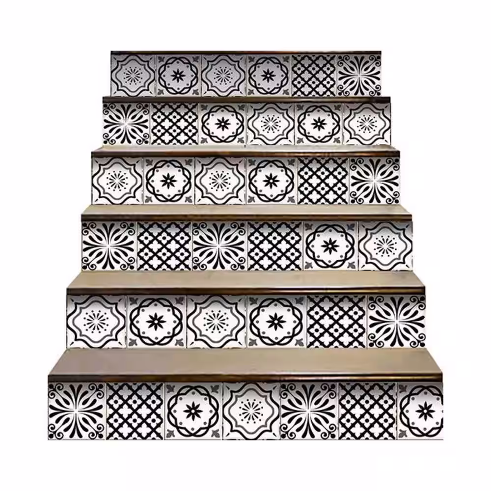 HomeRoots Black/White 8 in. x 8 in. Vinyl Peel and Stick Removable Tile Stickers (10.56 sq. ft./Pack)