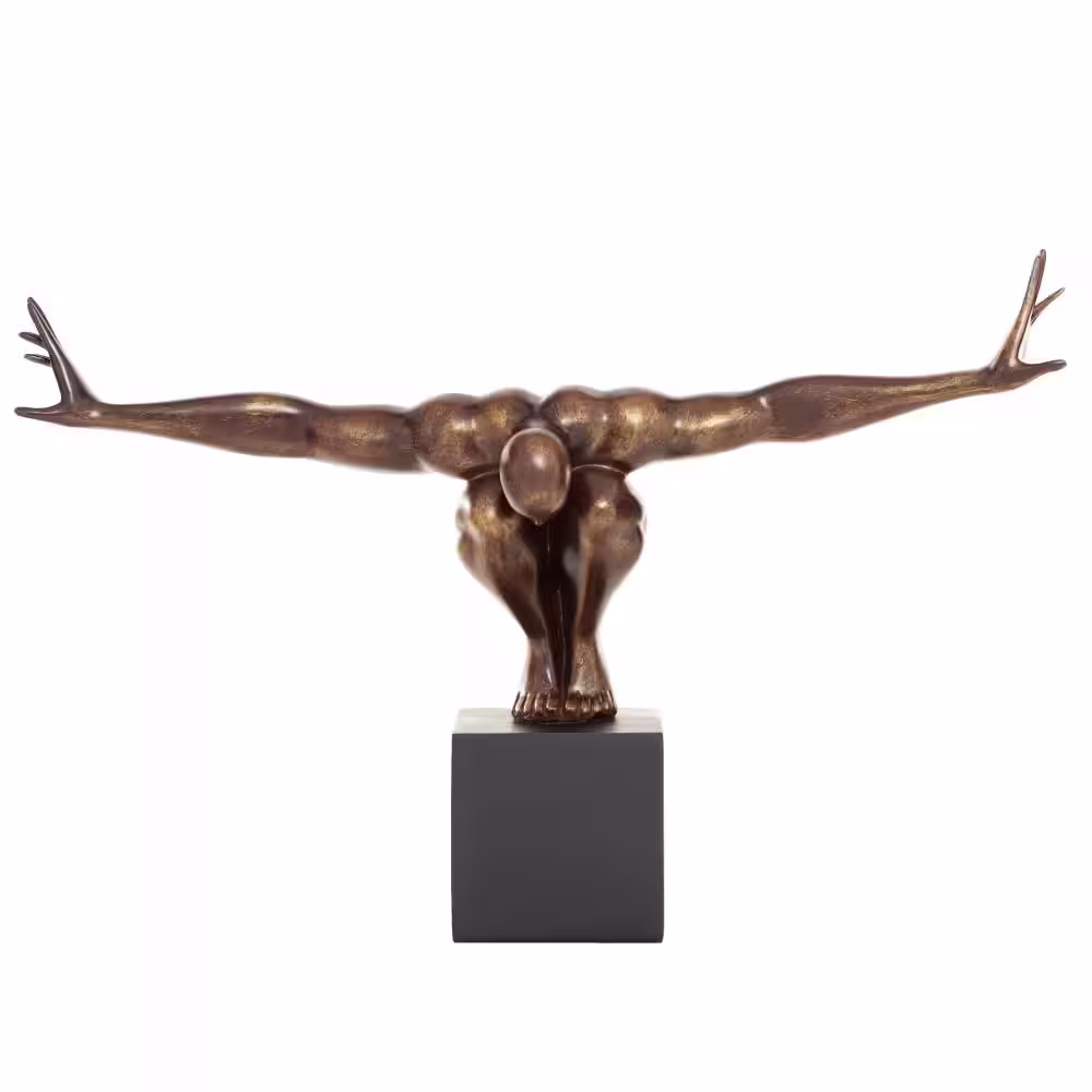 Litton Lane Bronze Polystone Diver Sculpture with Black Base