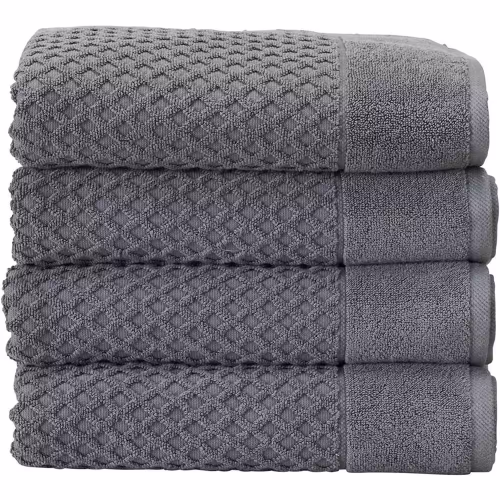 None 100% Cotton Gray Diamond Bath Towels (4-Pack)