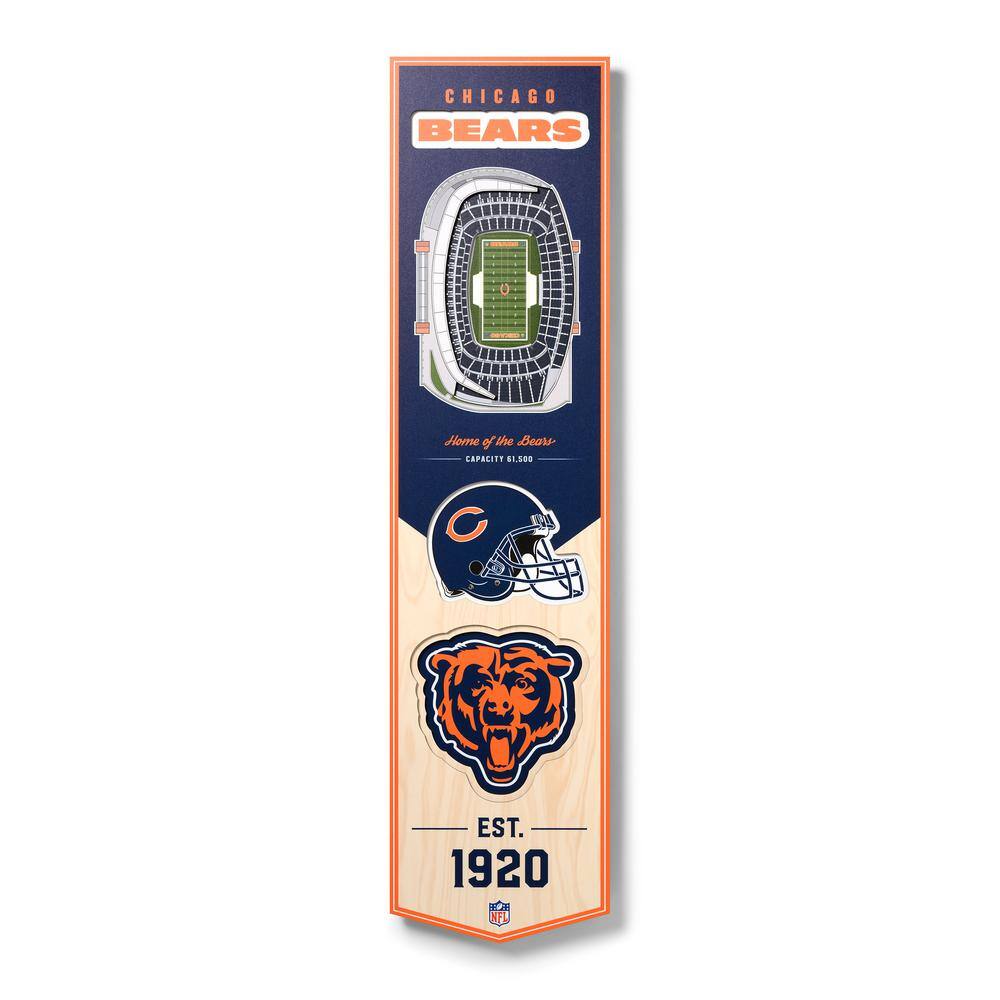 YouTheFan NFL Chicago Bears Wooden 8 in. x 32 in. 3D Stadium Banner-Soldier Field