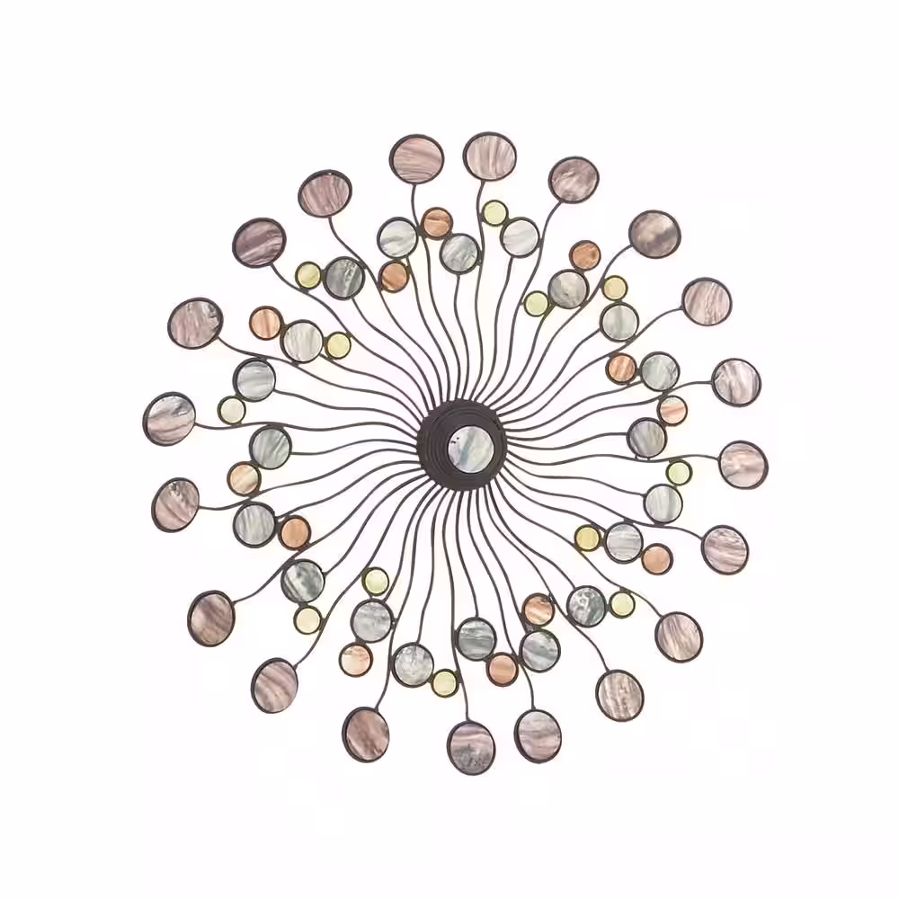 Litton Lane Metal Multi Colored Sunburst Wall Decor with Marble Inspired Accents