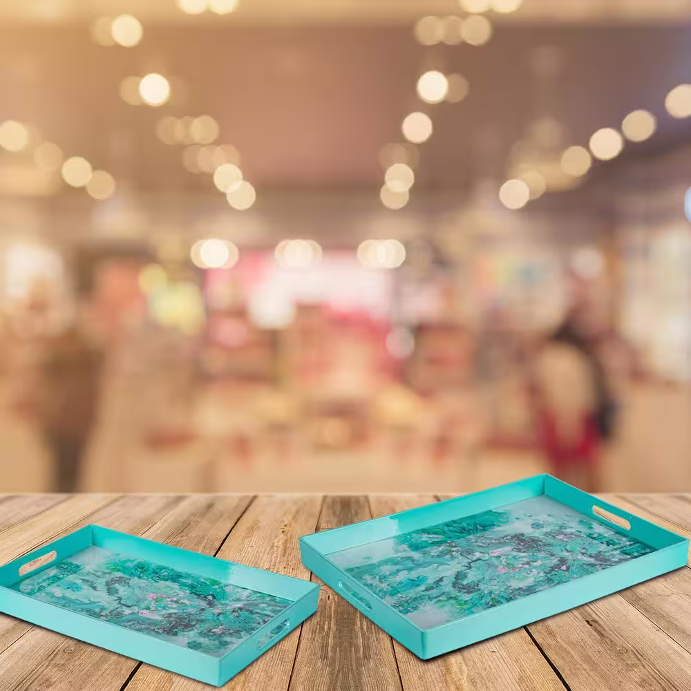 None Waylen Turquoise Decorative Trays (Set of 2)
