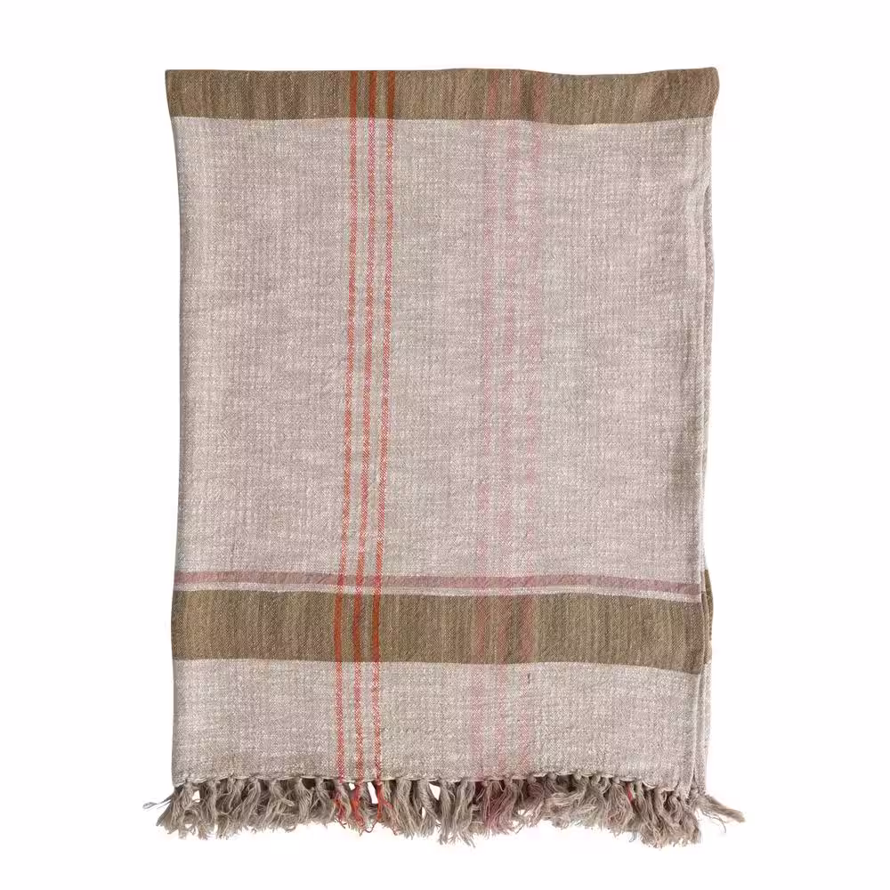 Storied Home Woven Cotton and Linen Multicolored Plaid Throw with Fringe