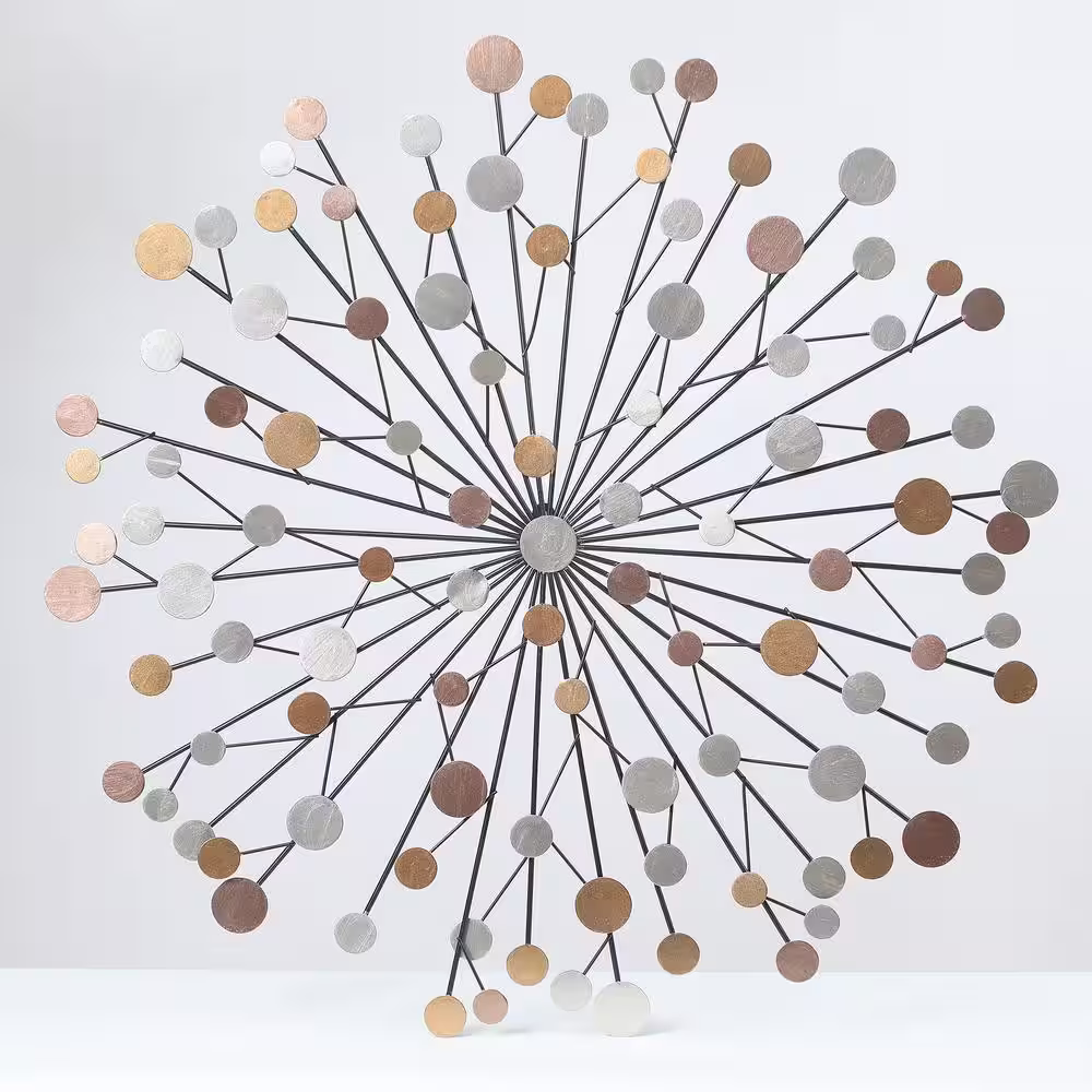 LuxenHome Iron Metal Silver, Black and Gold Round Abstract Wall Decor