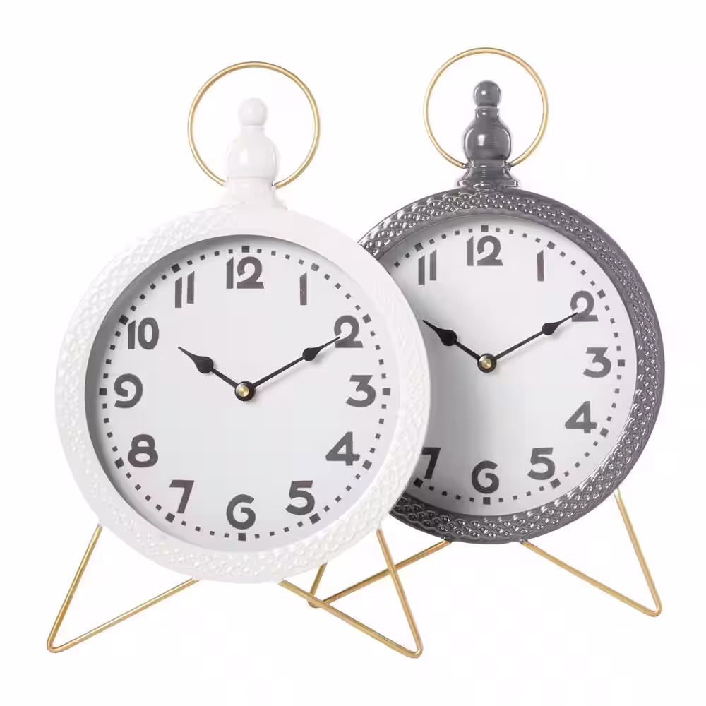 Litton Lane Multi Colored Metal Analog Clock with Gold Accents (Set of 2)