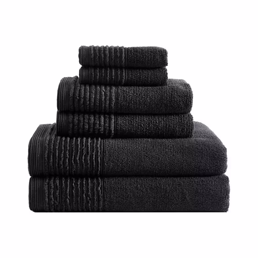 VERA WANG Sculpted Pleat 6-Piece Black Cotton Terry Towel Set