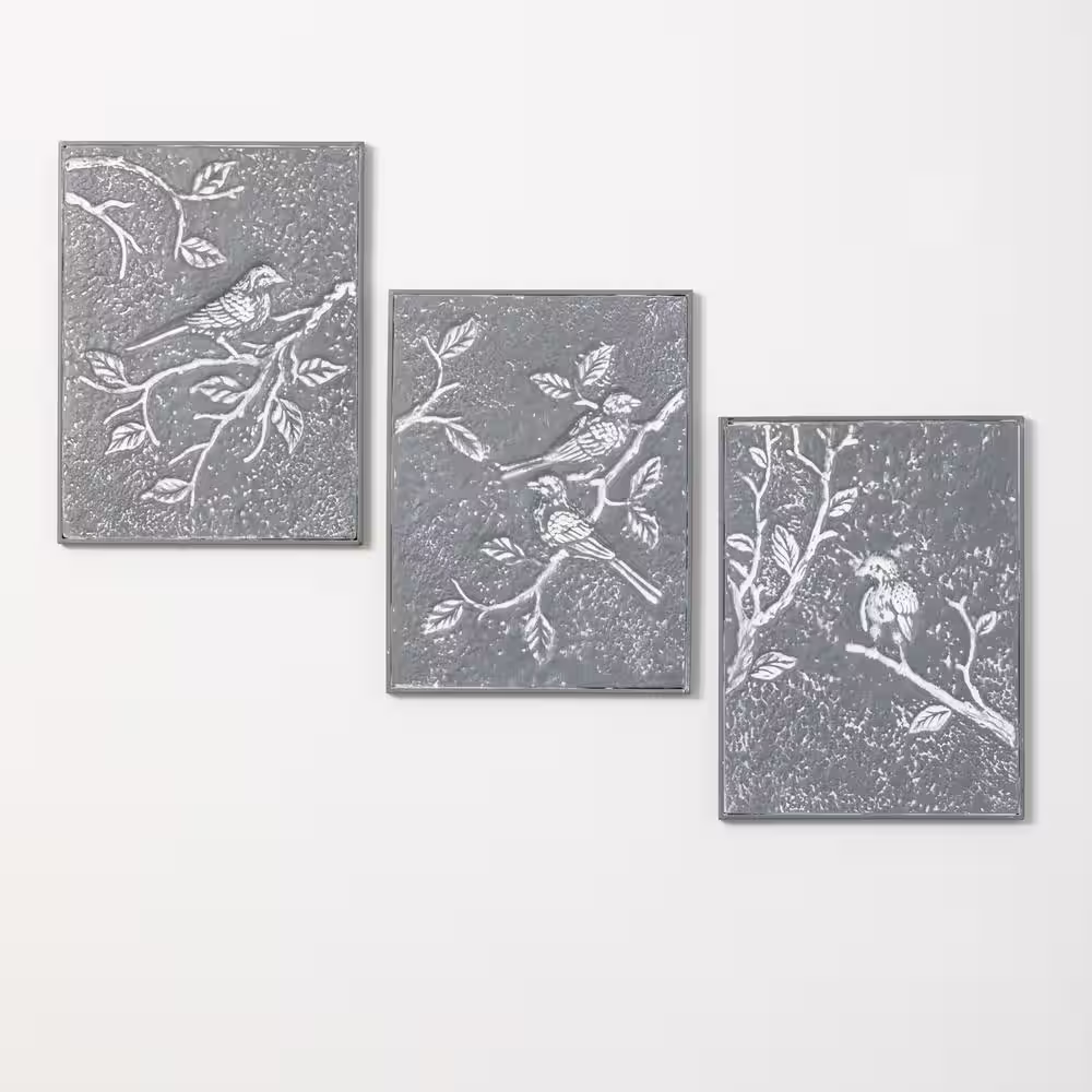 SULLIVANS 12.5" x 16.25" Bird and Botanical Etched Decorative Sign (Set of 3)
