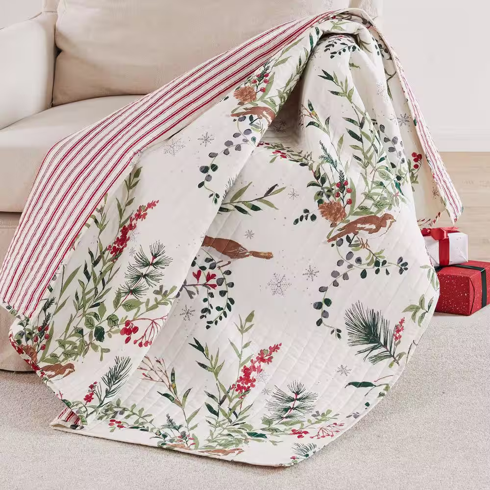 None Winterberry Forest Multi-Color Winter Bush Quilted Cotton Throw Blanket