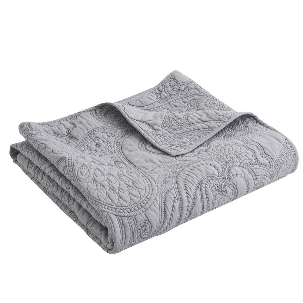 None Perla Grey Paisley Quilted Cotton Throw Blanket