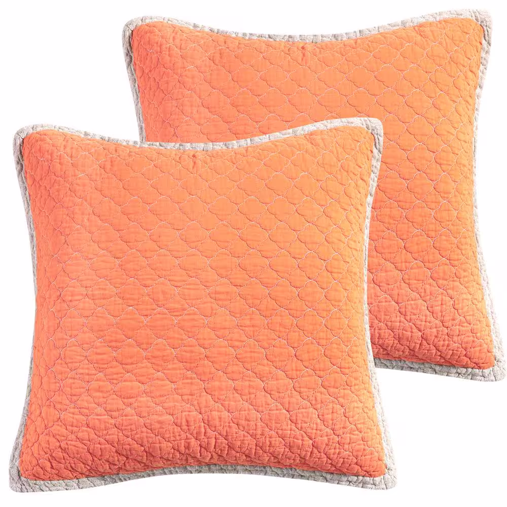 None Amelie Orange Quilted Cotton Euro Sham (Set of 2)