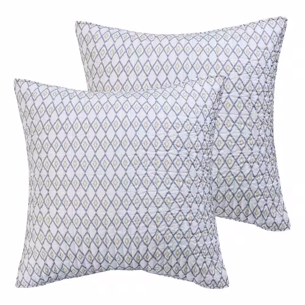 None Vista 2-Piece Green, Beige Diamond/Lattice Quilted Cotton Euro Sham (Set of 2)