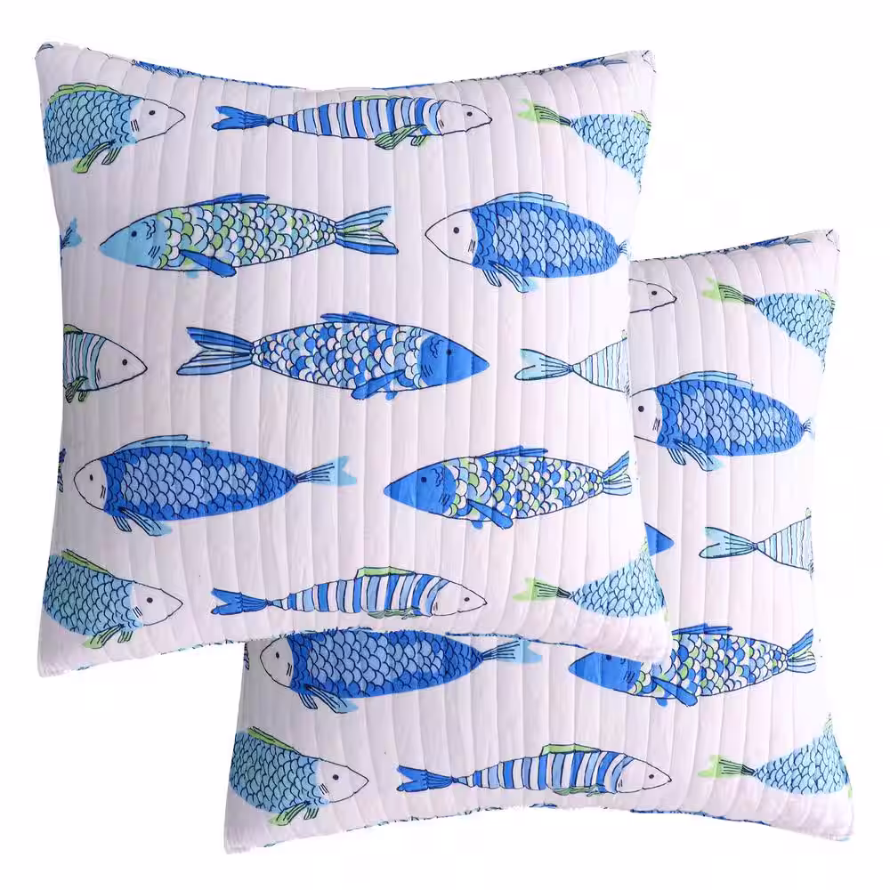 LEVTEX HOME Catalina Fish Blue, Green and White Print Cotton 26 in. x 26 in. Euro Sham (Set of 2)