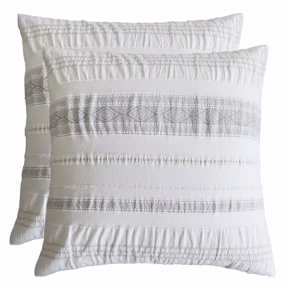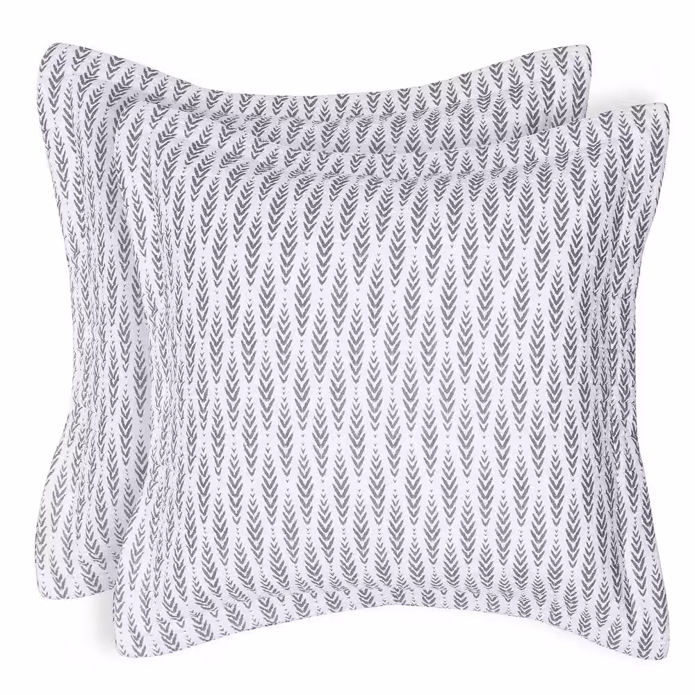 None Melina Grey, White Leaf Pattern Quilted Cotton Euro Sham (Set of 2)