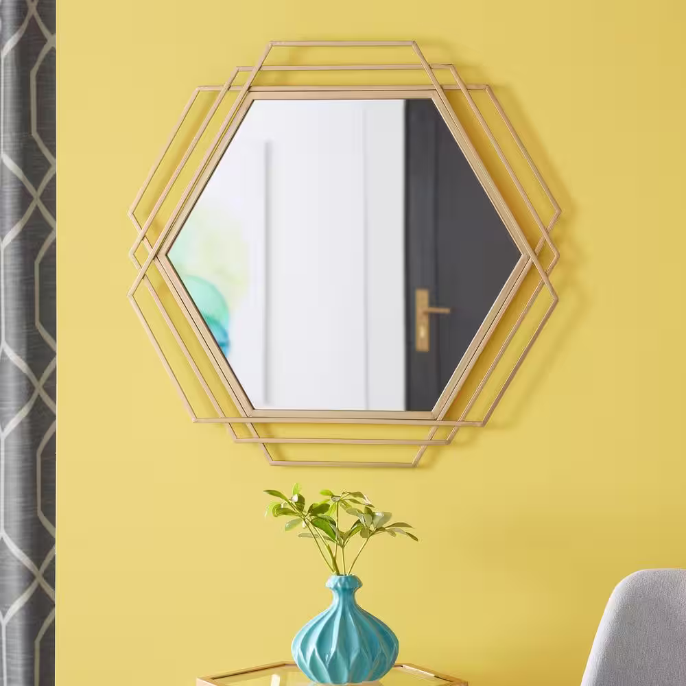 StyleWell Medium Hexagonal Gold Modern Accent Mirror (26 in. H x 27 in. W)