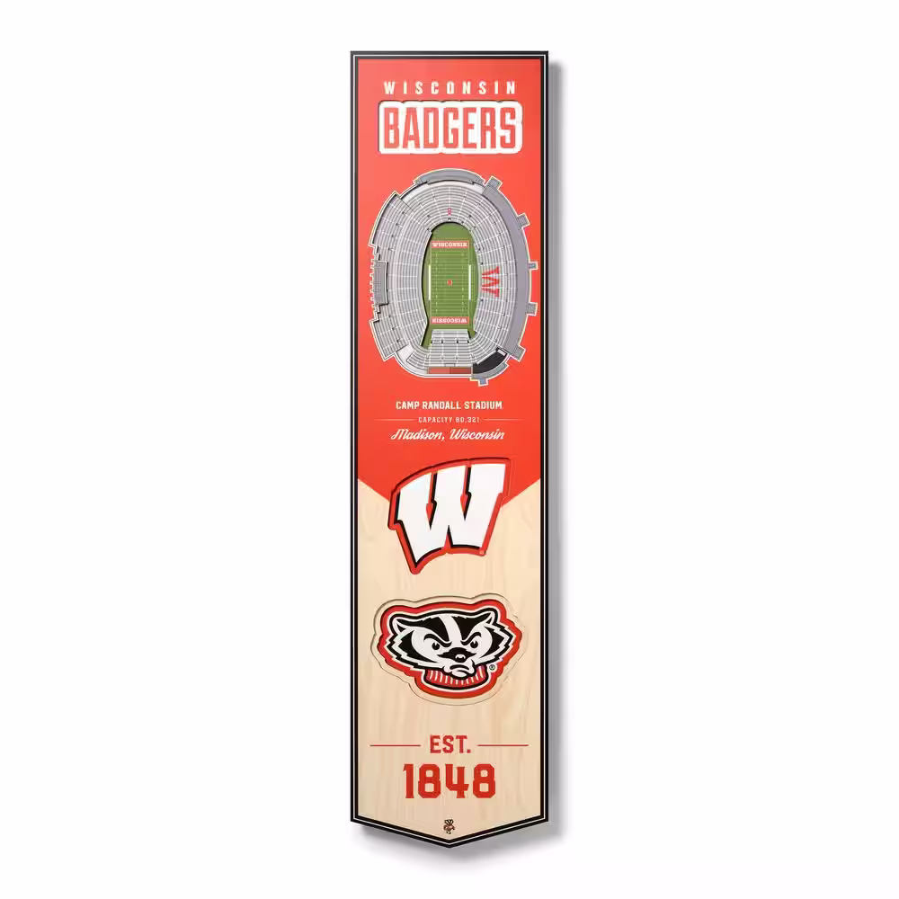 YouTheFan NCAA Wisconsin Badgers Wooden 8 x 32 3D Stadium Banner Decorative Sign -Camp Randall Stadium