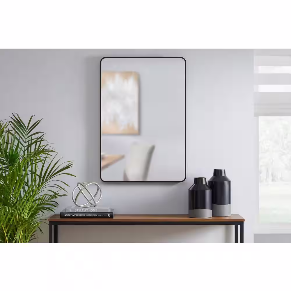 StyleWell Medium Modern Rectangular Black Framed Mirror with Rounded Corners (22 in. W x 32 in. H)