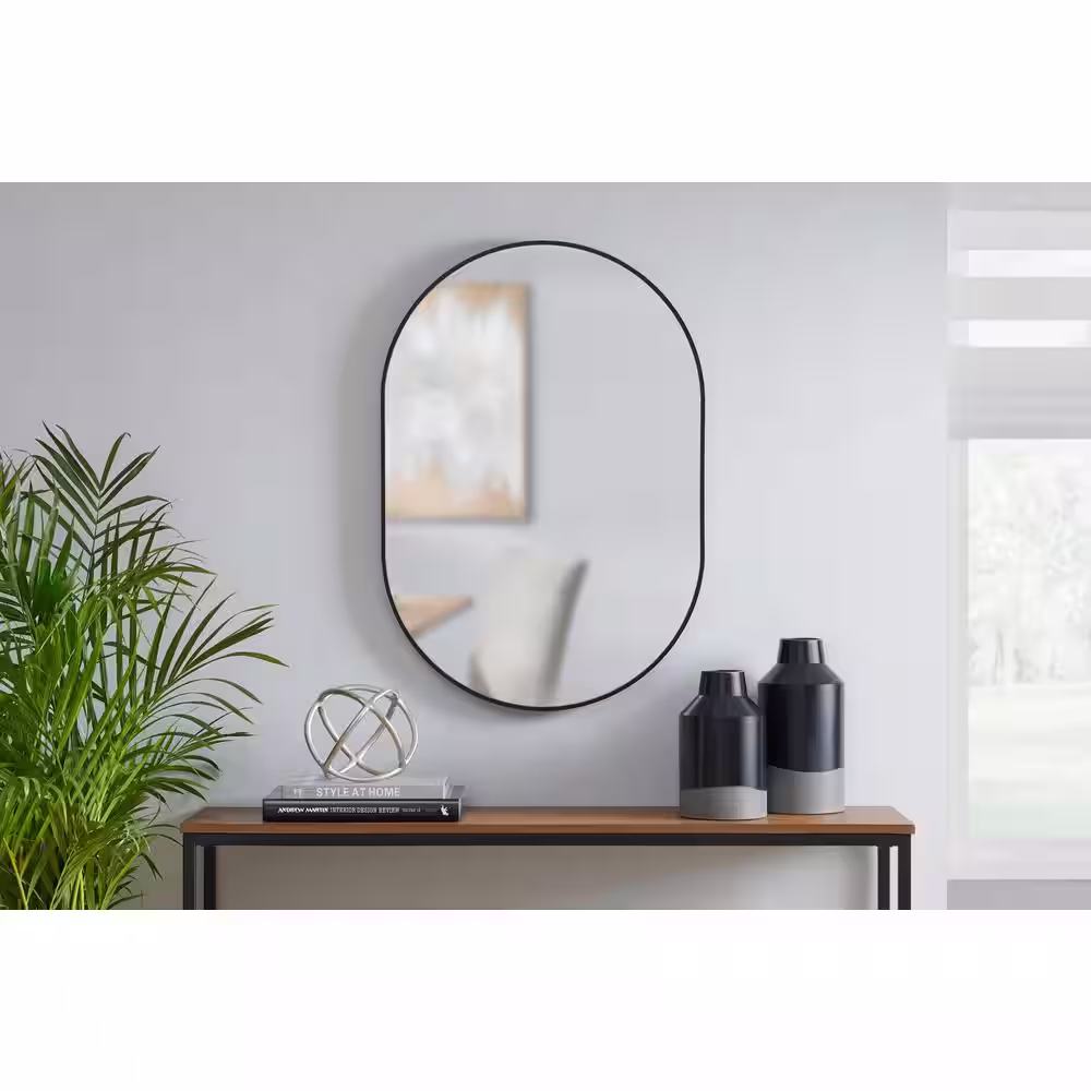 StyleWell Medium Modern Oval Black Framed Mirror (22 in. W x 32 in. H)