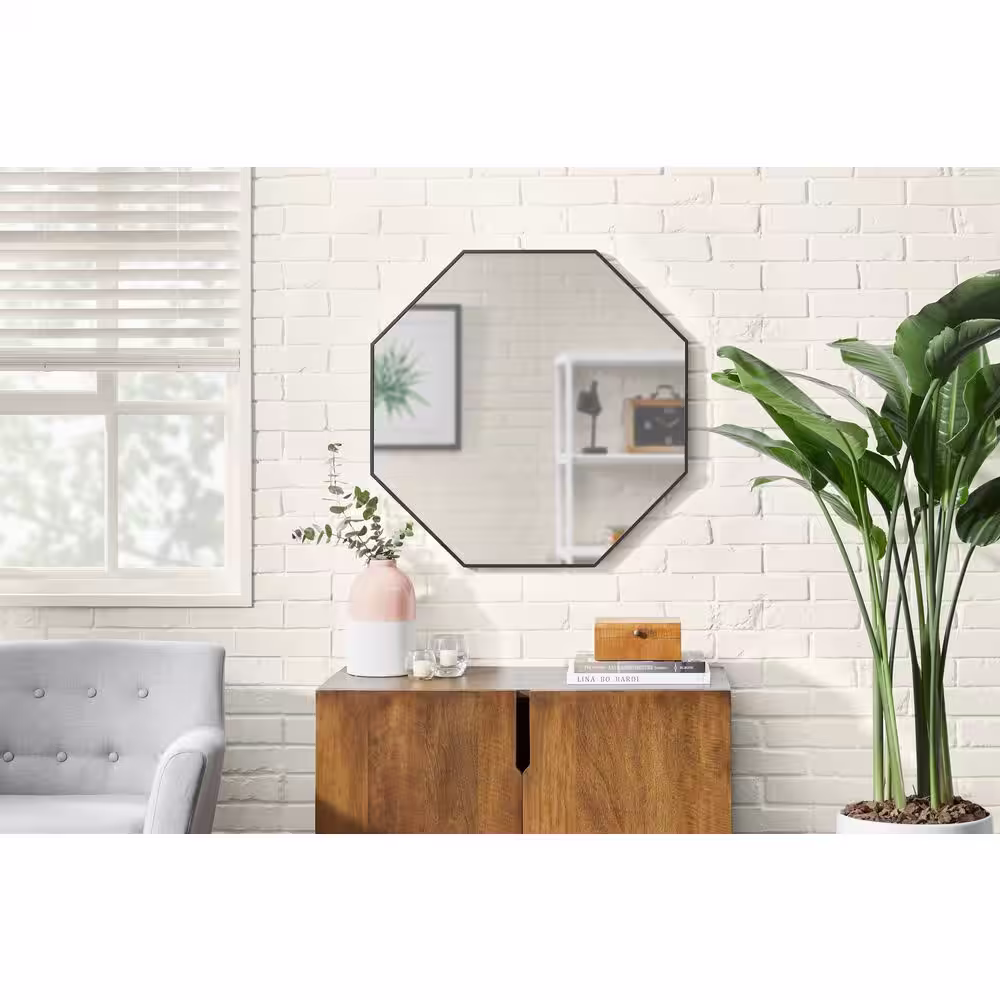 StyleWell Medium Modern Black Framed Octagon Mirror (27 in. W x 27 in. H)