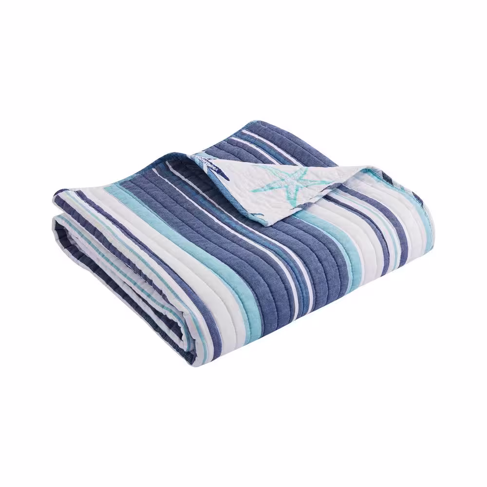None Camps Bay Blue Stripe Coastal Quilted Cotton Throw Blanket