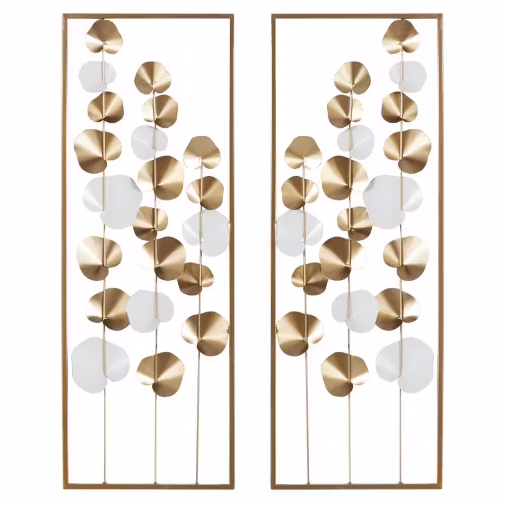 Litton Lane Metal Gold Tall Cut-Out Leaf Wall Decor with Gold Frame (Set of 2)