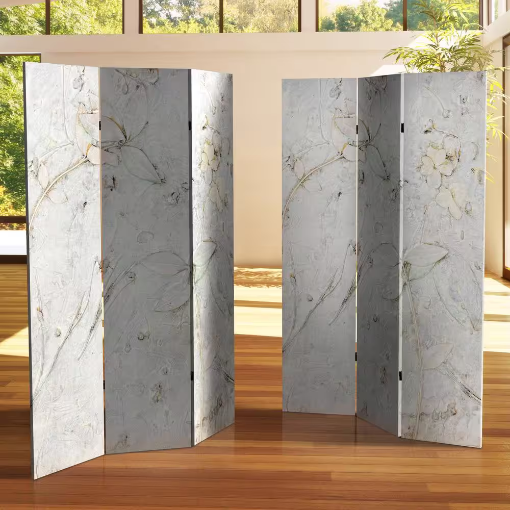 Oriental Furniture 6 ft. Ivory Flowers Printed 3-Panel Room Divider