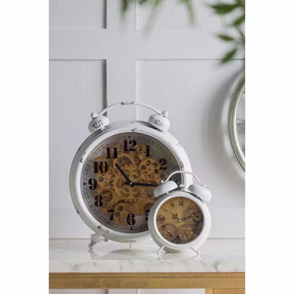 A & B Home White Classic Gears Table Clock
