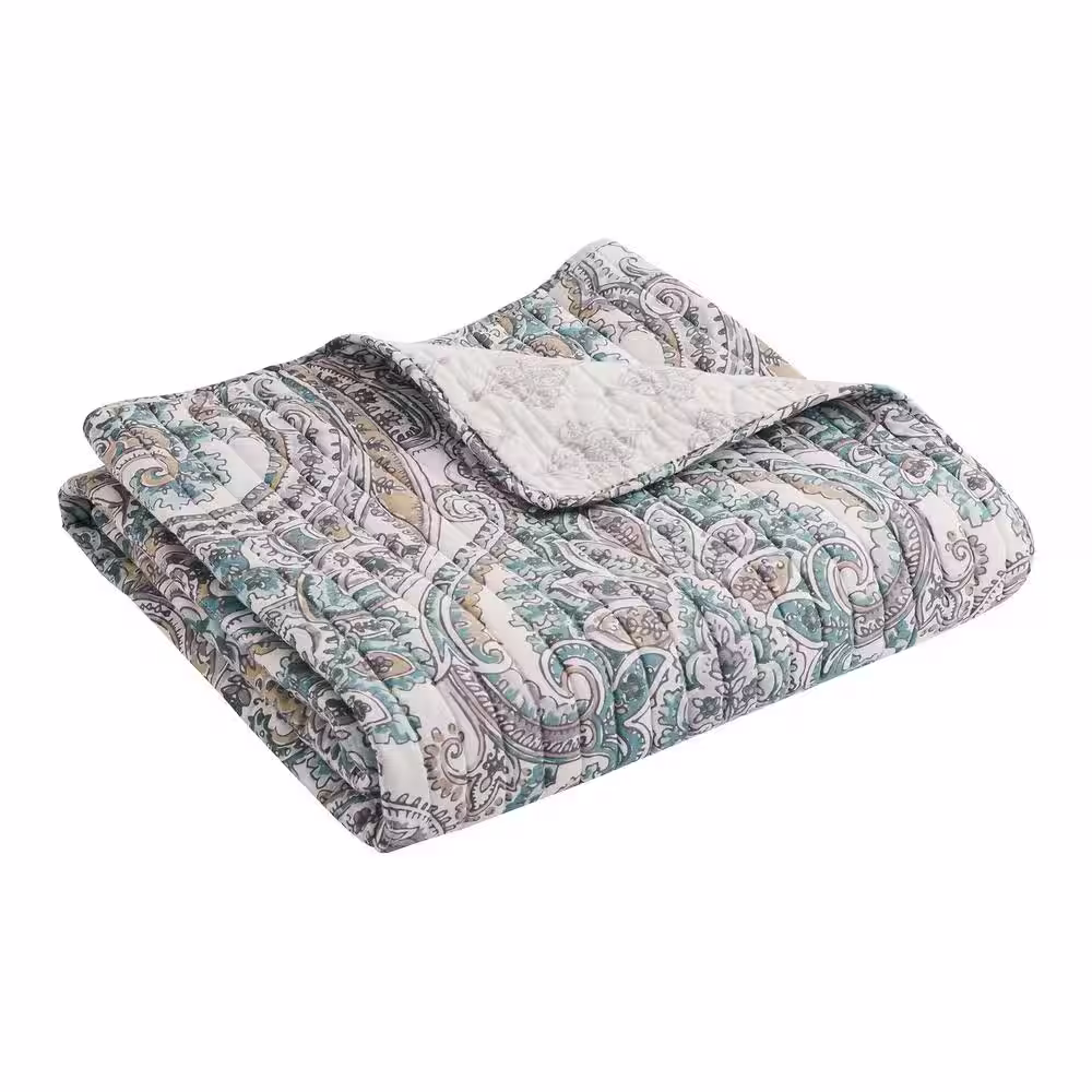 None Rome Beige, Blue, White Paisley/Medallion Quilted Cotton Throw Blanket