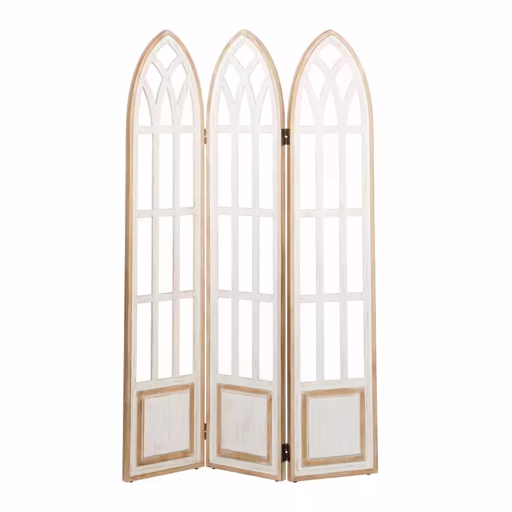 Litton Lane 6 ft. White 3-Panel Hinged Foldable Arched Partition Room Divider Screen with Window Pane Details