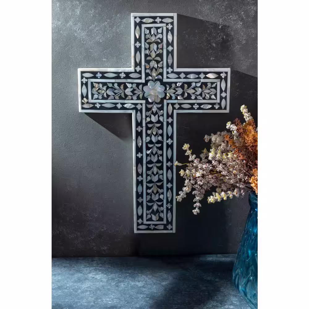 GAURI KOHLI Jodhpur Mother of Pearl Wall Cross Black Decorative Sign
